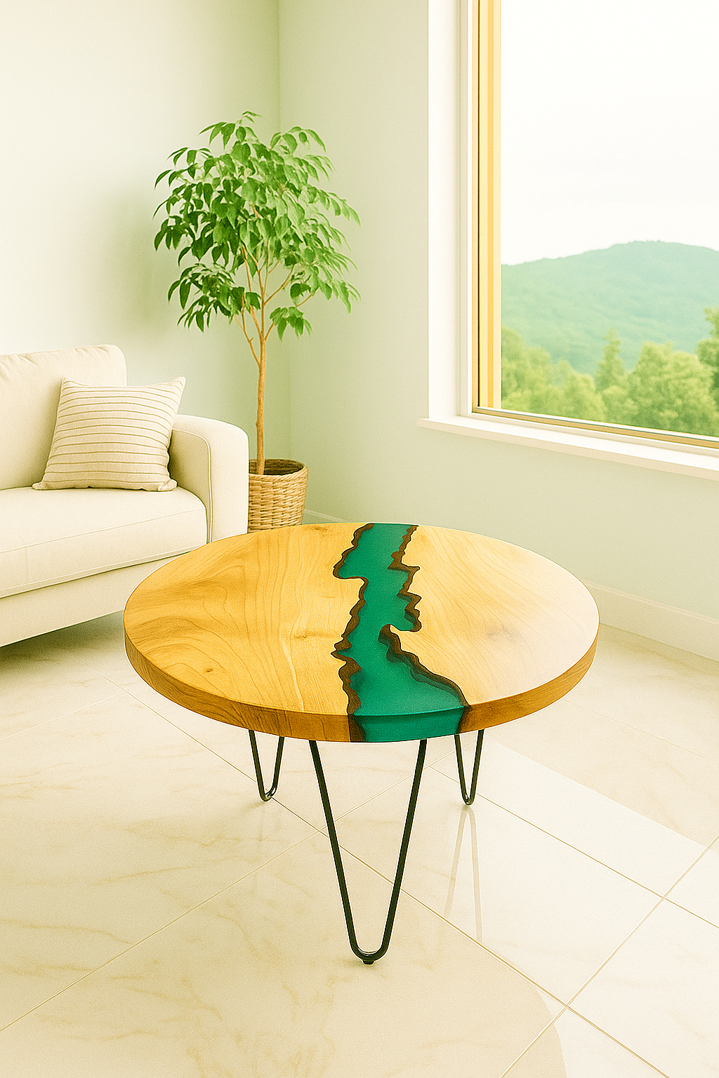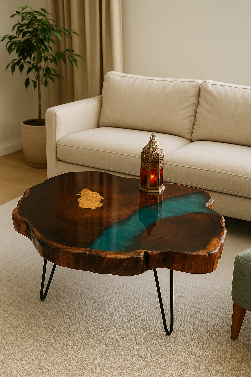 Handcrafted wooden masterpieces infused with stunning epoxy, perfect for contemporary interiors.